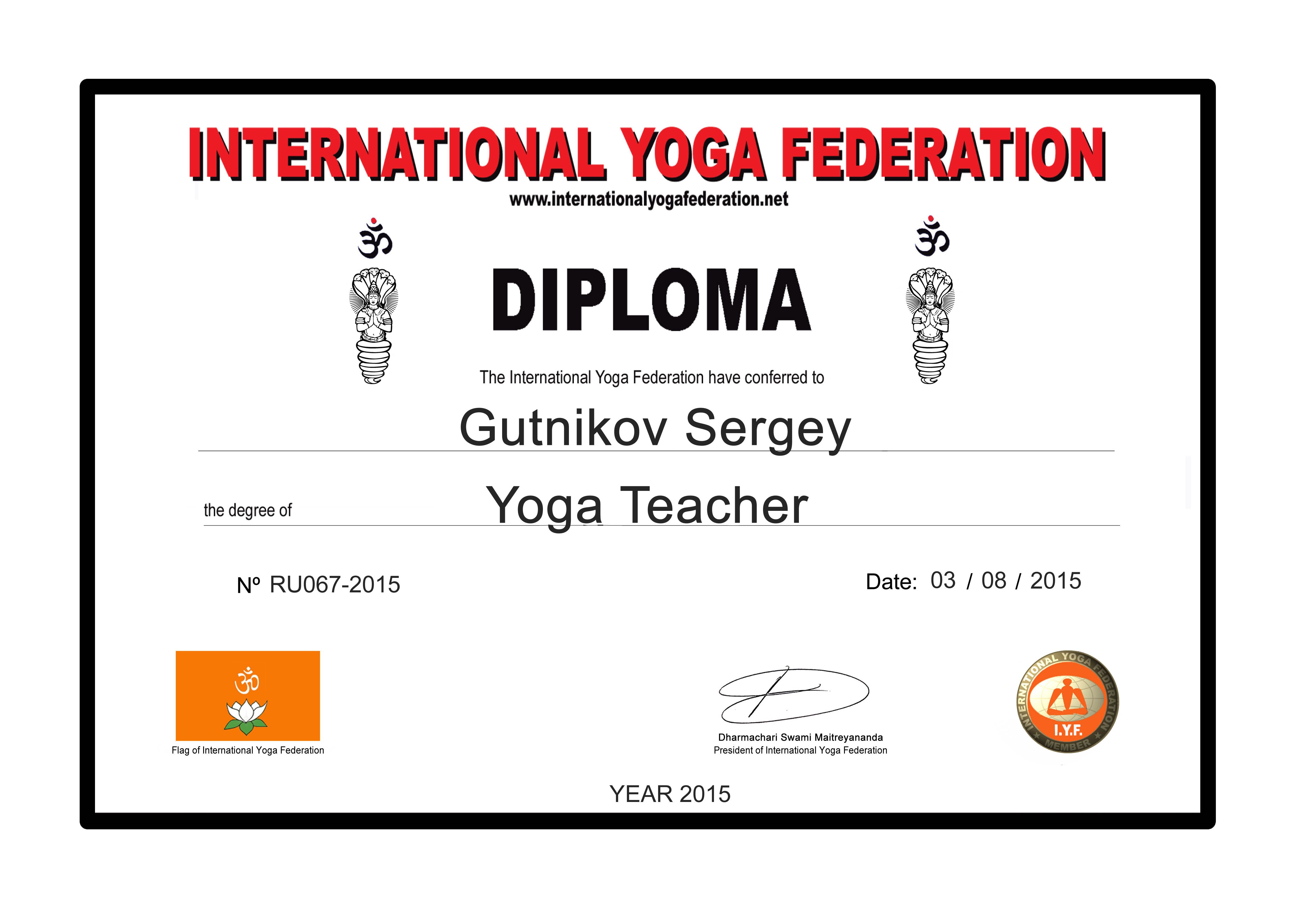 • Преподаватель йоги Международной Федерации Йоги